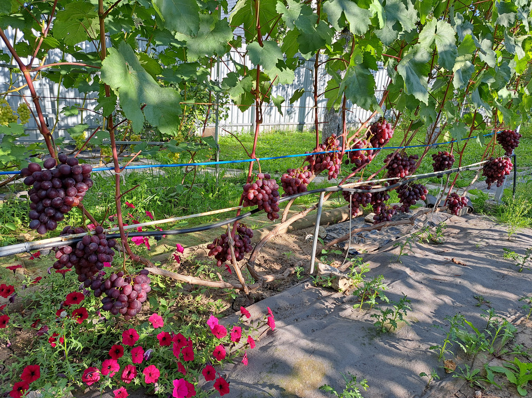 А у меня непонятки, если в прошлом году к моменту созревания Аркадии ягодки ПУ уже начинали изюмиться, то сегодня сахар только 17 и пока немного навязчивая кислинка. И ведь гроздей всего около 25 на 30 побегов, правда ягоды очень крупные и грозди около 1 кг. Ну ладно, я его прощаю, пусть благодарит синоптиков которые обещают неплохую погоду.