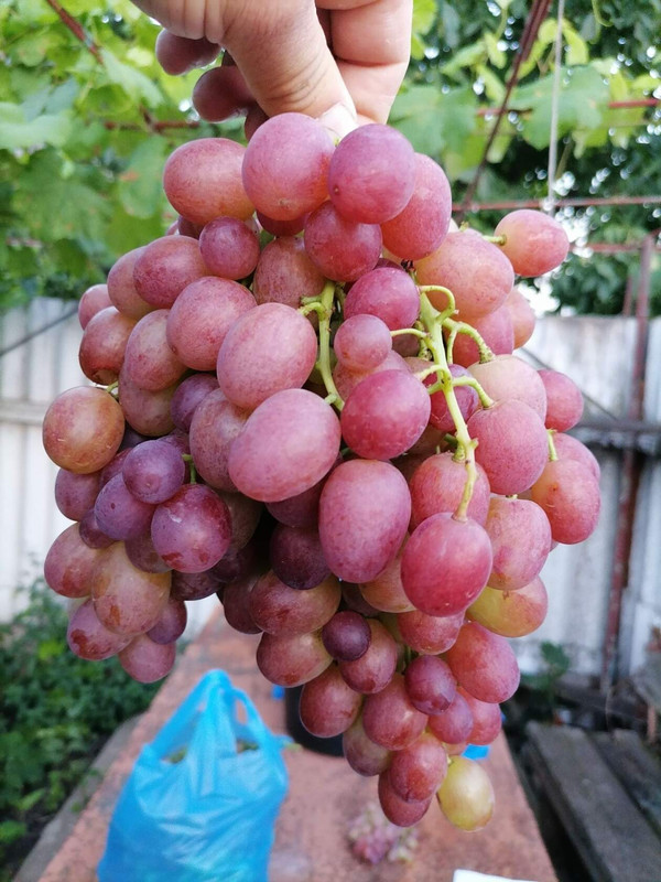 В этом году ягода не набрала цвет и был менее выраженный мускат.ни когда не трещал и не страдал от солнечных ожогов.Лозы мощные,но жирование бывает крайне редко.Один из стабильных и урожайных сортов,но зачастую цепляет оидиум,здесь нужен "глаз,да глаз"