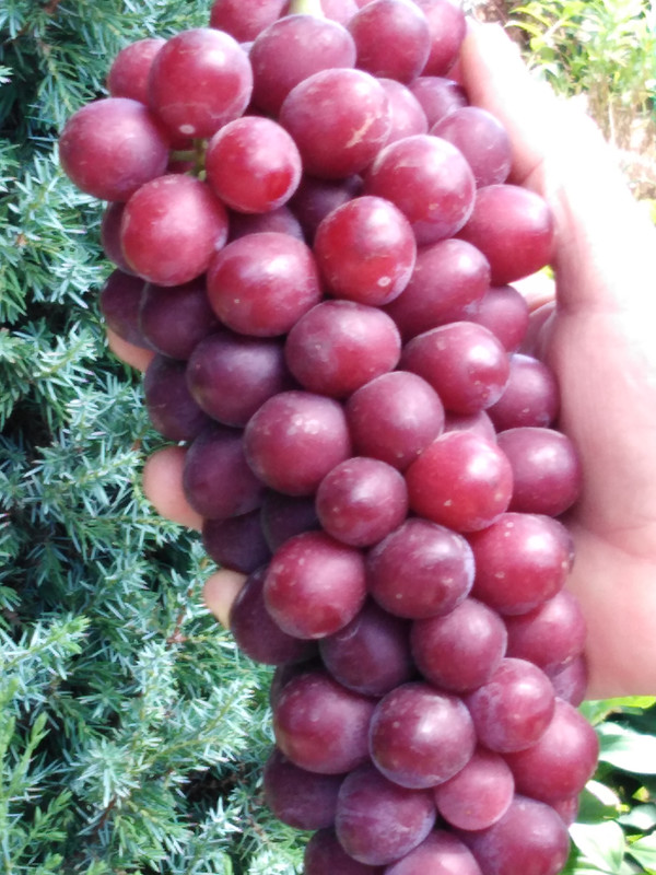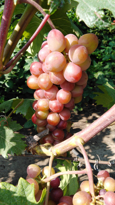 На Пёстром, как и обычно, оставила 2 гроздочки на побег, они у меня небольшие всегда. Через пару дней он созреет. Мускат сильный с примесью тропических фруктов. Говорят, похоже на ягоды личи. Сама я ничего подобного утверждать не могу, личи не пробовала. На рынок он точно не поедет, продам из дома.